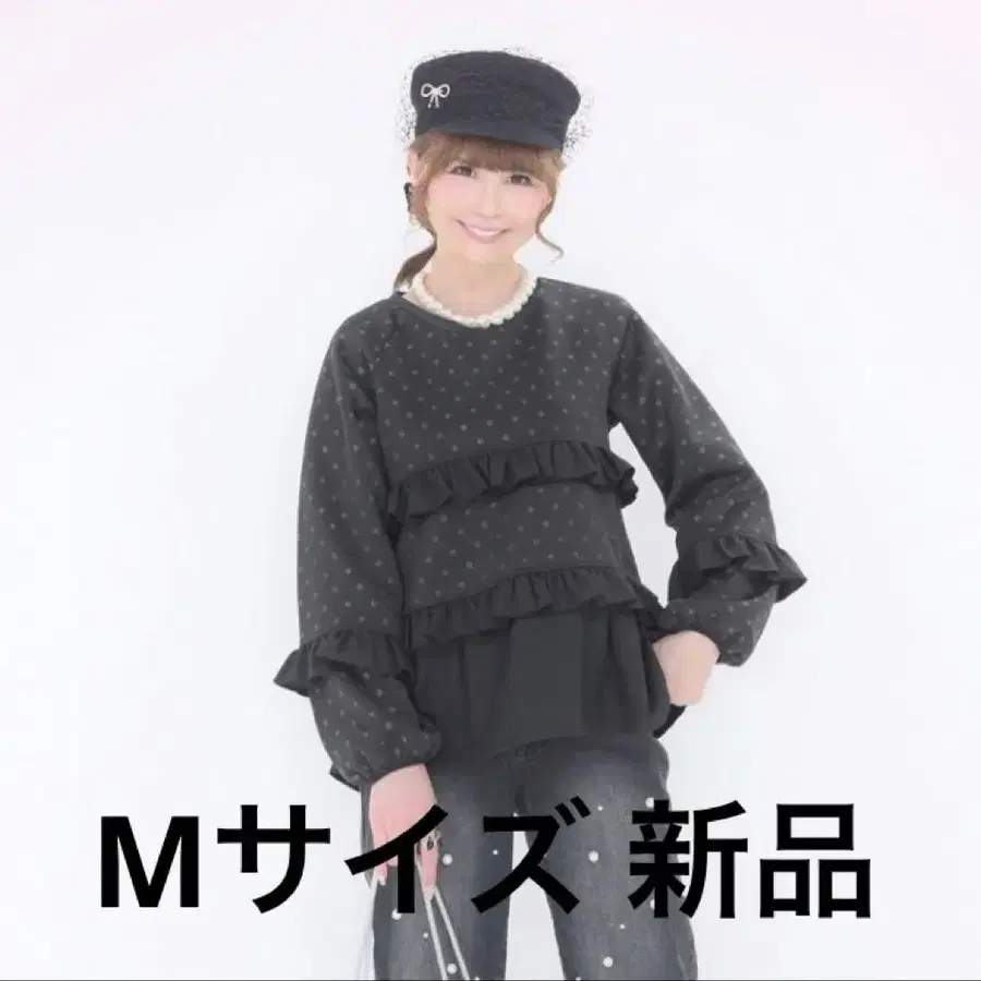 앤드러브 &LOVE 라메 도트의 어른 프릴 풀오버 블랙 M 새상품