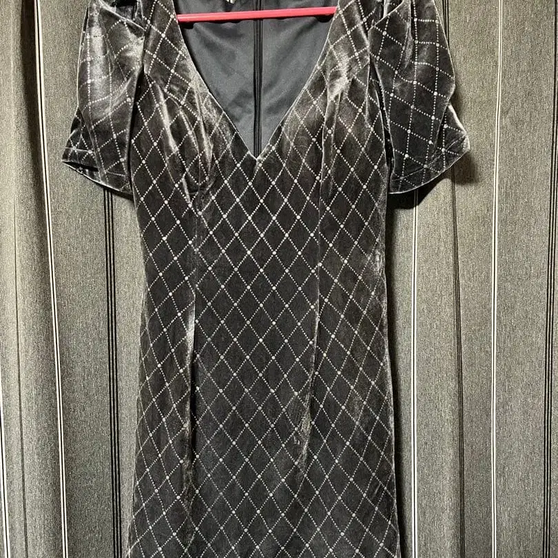 그레이 벨벳 다이아몬드 패턴 미니 원피스