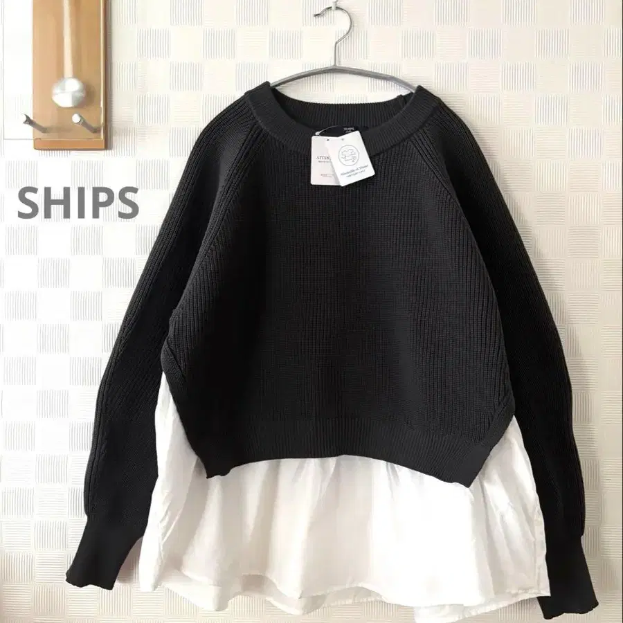 택 포함 새상품 SHIPS 밑단 플레어 니트 풀오버 차콜 그레이