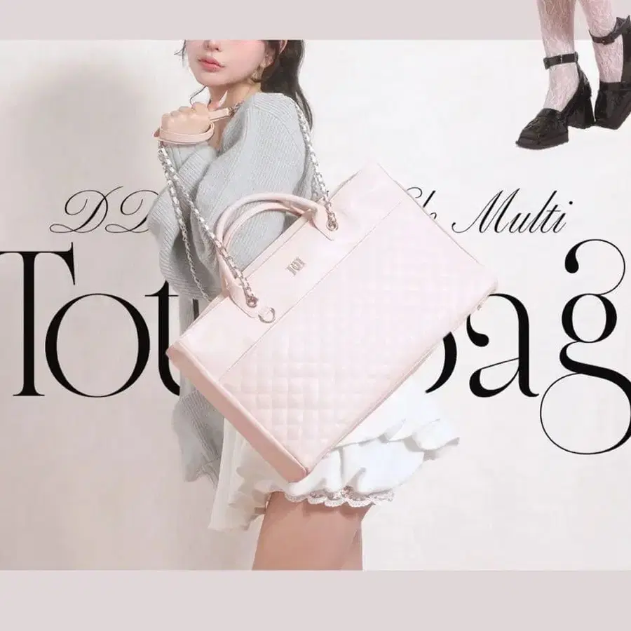 darich DD 퀼팅 와이드 멀티 토트백 핑크