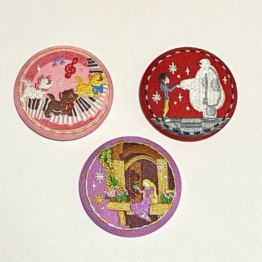 디즈니 자수 캔뱃지 세트 베이맥스 라푼젤 마리 캔뱃지