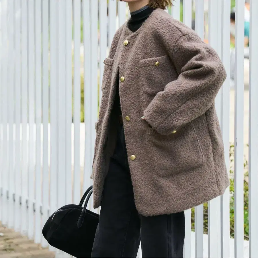 coca 미사용 푸들 보아 금장 버튼 노카라 코트
