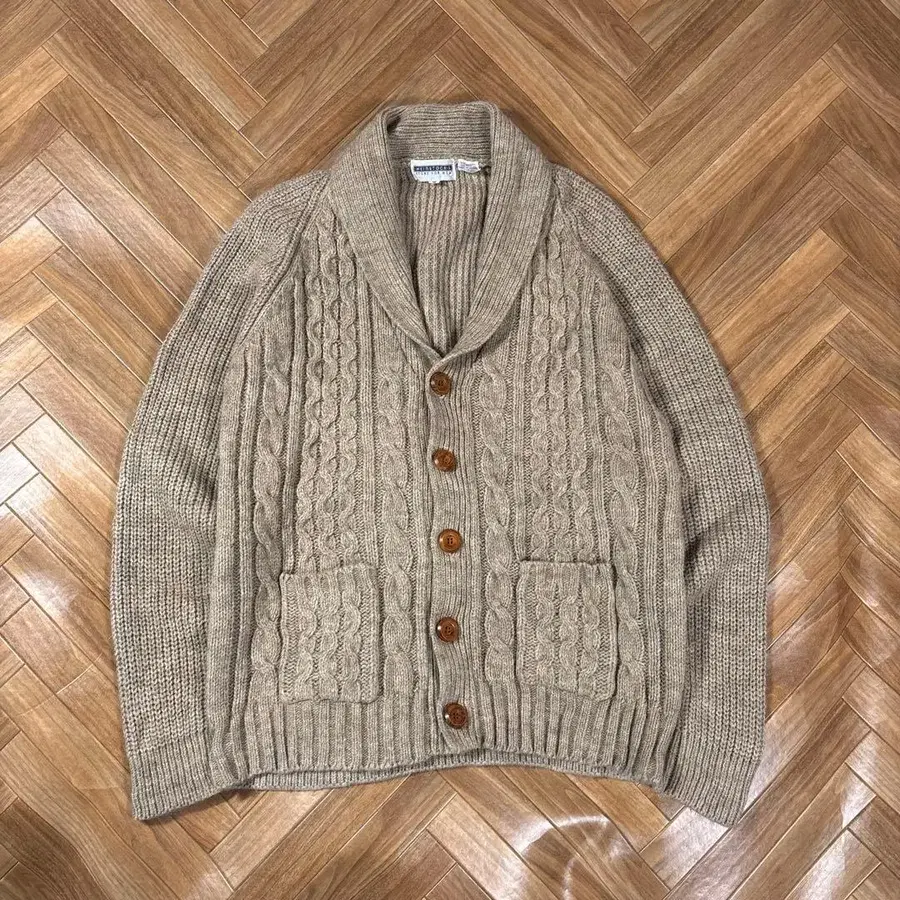 윈스톡스 숄카라 가디건 울 혼방 아크릴 니트 베이지
