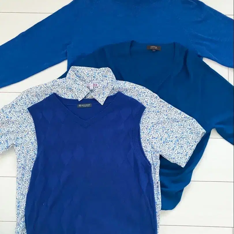 [할인] 니트 베스트 반팔 셔츠 블루 계열 4벌 세트