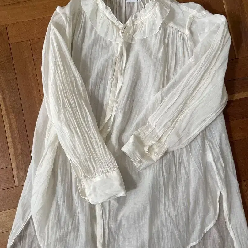 [ iki ] 면 나일론 로운 개더 칼라 블라우스