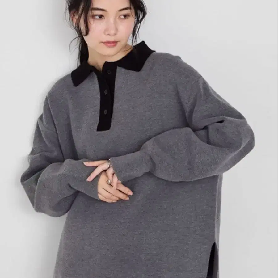 차콜 그레이 긴팔 피케 셔츠