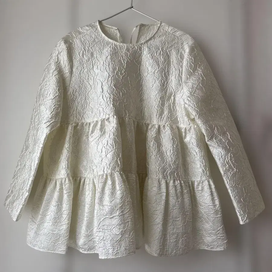 OHGA 자카드 개더 블라우스 화이트