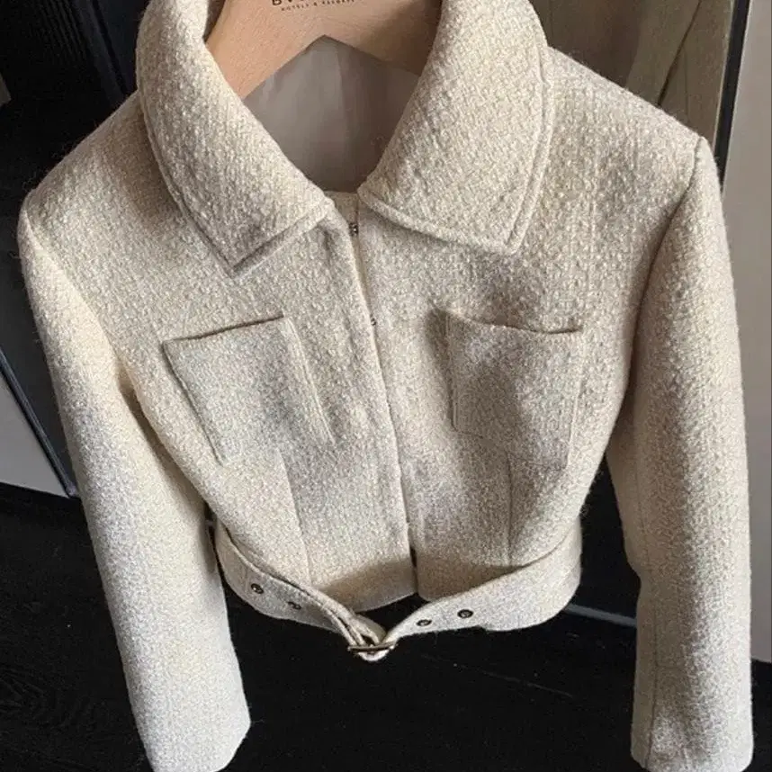 화이트 트위드 숏 자켓