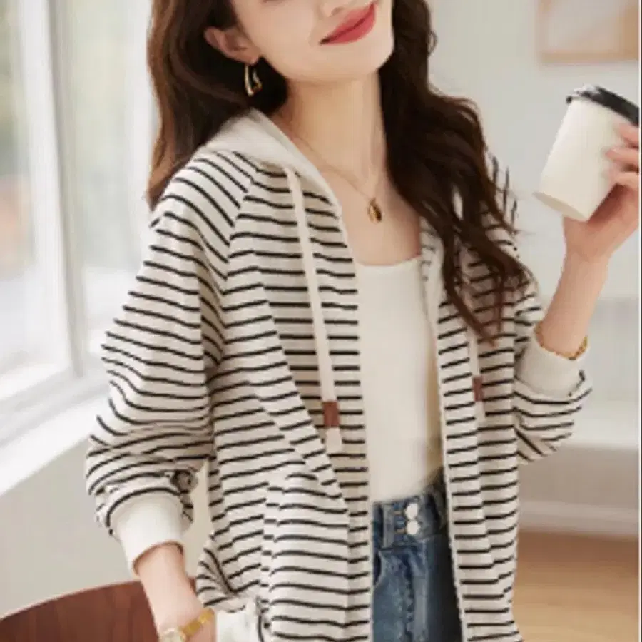 스트라이프 후드 부착 후드티