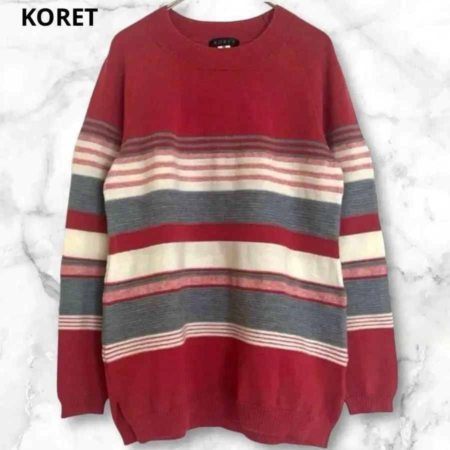 코렛 긴팔 니트 보더 스웨터 울 100% 일본제 레드 S