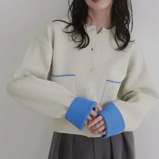 [새상품] 바이컬러 니트 가디건 아이보리 Lian 리안