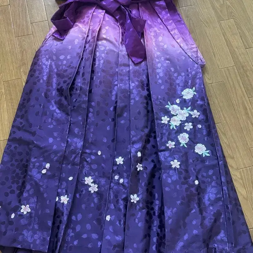 새상품급 보라색 꽃무늬 자수 하카마 91cm 2점 세트