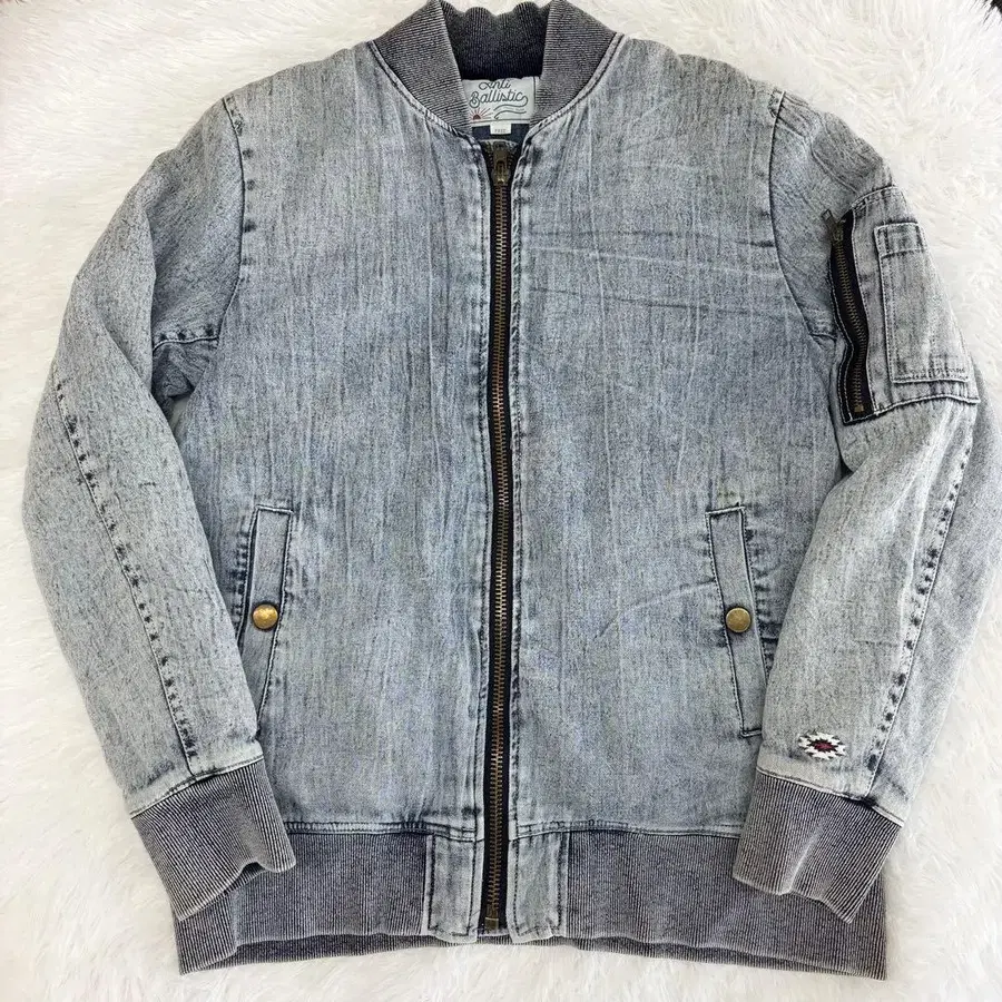 데님 자켓 MA-1 보아 안감 라이트 블루 프리 사이즈 백 프린트