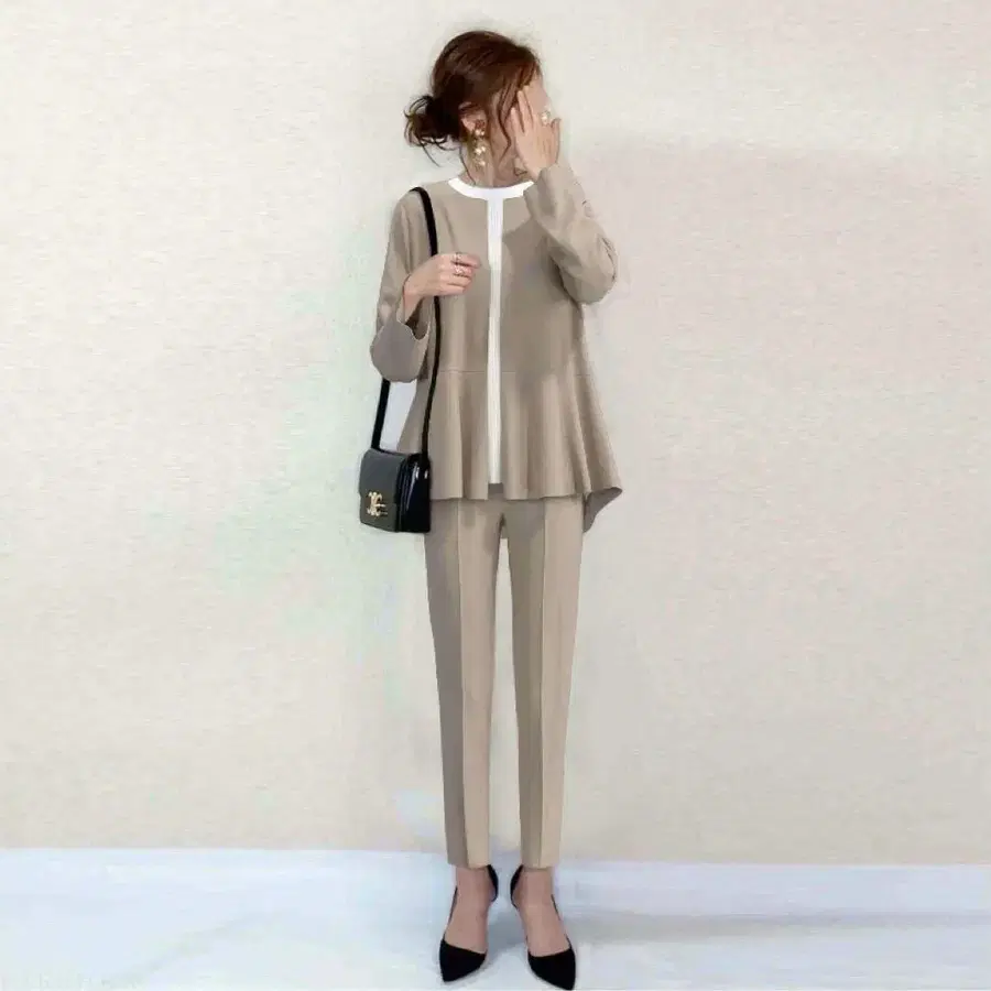 베이지 셋업 팬츠 슬림핏