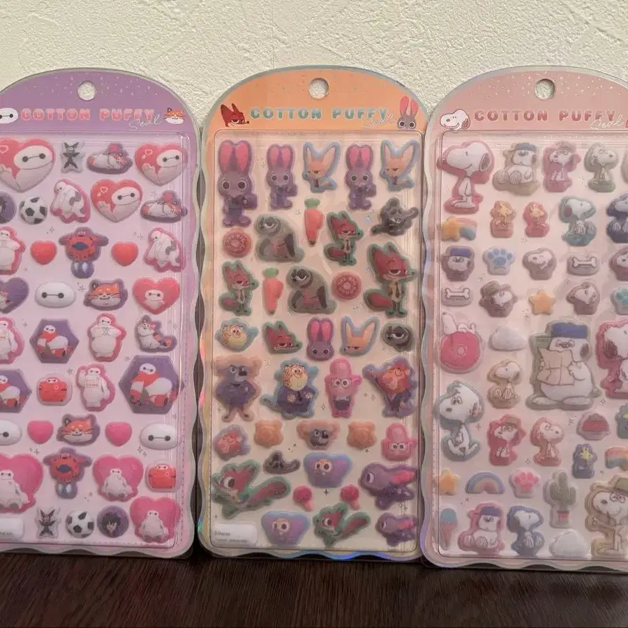 주토피아 베이맥스 스누피 코튼 퍼프 3개 세트