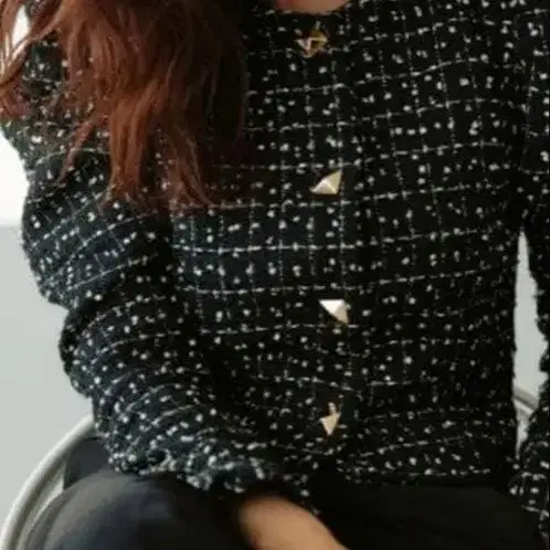 카미사키 메구미 콜라보 노카라 블랙 화이트 트위드 자켓