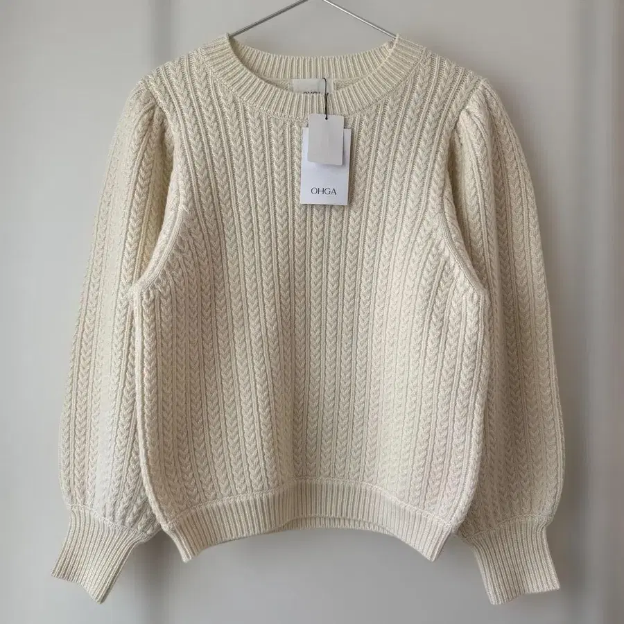 택 포함 미사용 새상품 OHGA 케이블 니트 화이트