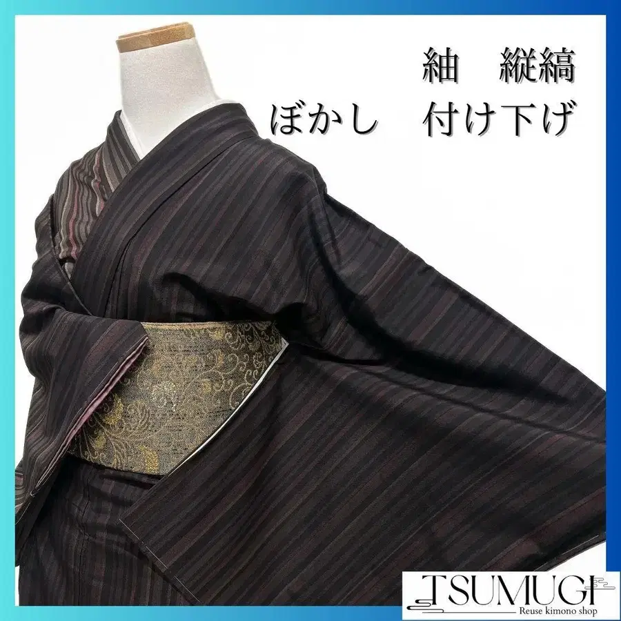미착용, 紬지에 세로 줄무늬와 흐림 효과가 디자인된 츠케사게입니다.