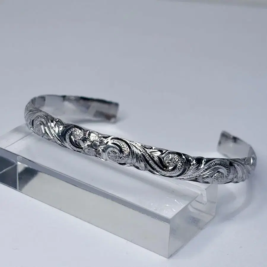 MU ENGRAVING의 손 조각 하와이안 주얼리 C 타입 뱅글 (SILVER925) ⭐︎ 새상품/한정판 ⭐︎ 가늘고 가벼운 착용감 (평소 사용하기 좋은 경량 타입) ⭐︎ 오래 사용할 수 있는 딥 컷 기법 ⭐︎ 컷 아웃 기법으로 옆면까지 수작업, 입체적이고 고급스러운 마무리 ※ 선물 희망 시 미리 댓글 부탁드립니다. (+500엔으로 기프트 BOX 대응) [상세] 외곽 13.6cm (SS) 입구 3cm 폭 6mm 소재: 실버 925 (각인 있음) 색상: 실버 (로듐 가공 완료) 부속품: 보증서 [사이즈에 대해] C 타입 (조정 가능)이므로 손목 사이즈가 걱정인 분에게도 추천합니다. 팔 둘레 약 15cm까지의 분이 딱 맞게 착용하고 싶거나 가느신 분에게 추천합니다. [칼레이키니의 의미] '칼레이키니'는 하와이에서 신성시되는 파도 (Nalu)를 나타내는 모티브입니다. 파도는 [끊임없이 이어지는 행복] [영원히 계속되는 사랑]을 상징하며, 부적처럼 착용할 수 있는 디자인입니다. [취급 방법] 1. 손목의 가는 부분부터 끝을 살짝 밀어 넣어, 뱅글 돌려 착용 2. 강한 힘으로 개폐는 피하고, 조정은 천천히 부드럽게 [제작 기법] 보통보다 깊게 조각하는 '딥 컷'으로, 시간과 기술이 필요하지만, 무늬가 선명하게 돋보이며 오래도록 아름다움을 유지합니다. [가격에 대해] 제작 시간, 기술, 디자인의 복잡성, 실버의 두께에 따라 가격을 설정하고 있습니다. (원칙적으로 네고 불가) ※ 핸드메이드이므로 기계와 같은 완벽함을 원하시는 분은 삼가해 주십시오. ※ 반품 교환 불가