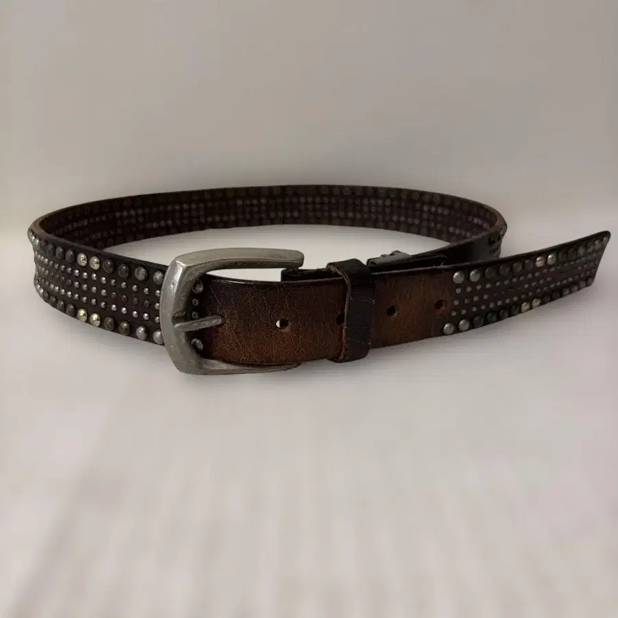 y2k 00s 스터드 벨트 브라운 천연 가죽 아메카지
