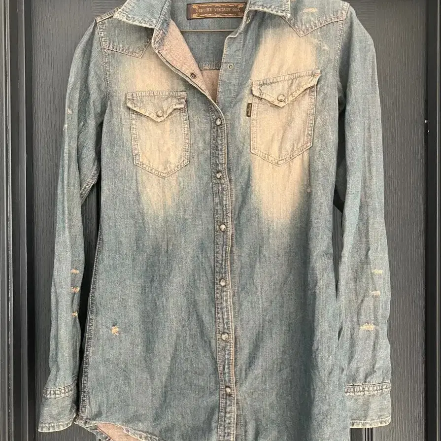 빈티지한 분위기가 멋진 데님 셔츠. 프리 사이즈이지만 아마 M 사이즈일 것입니다. ✴︎ 가격 협상은 하지 않으니 양해 부탁드립니다. - 브랜드: Genuine Vintage - 소재: 데님 - 디자인: 긴팔 버튼 업 포켓 부착 - 색상: 라이트 블루 페이드 가공 - 상태: 사용감 있음 데미지 있음 방문해 주셔서 감사합니다.