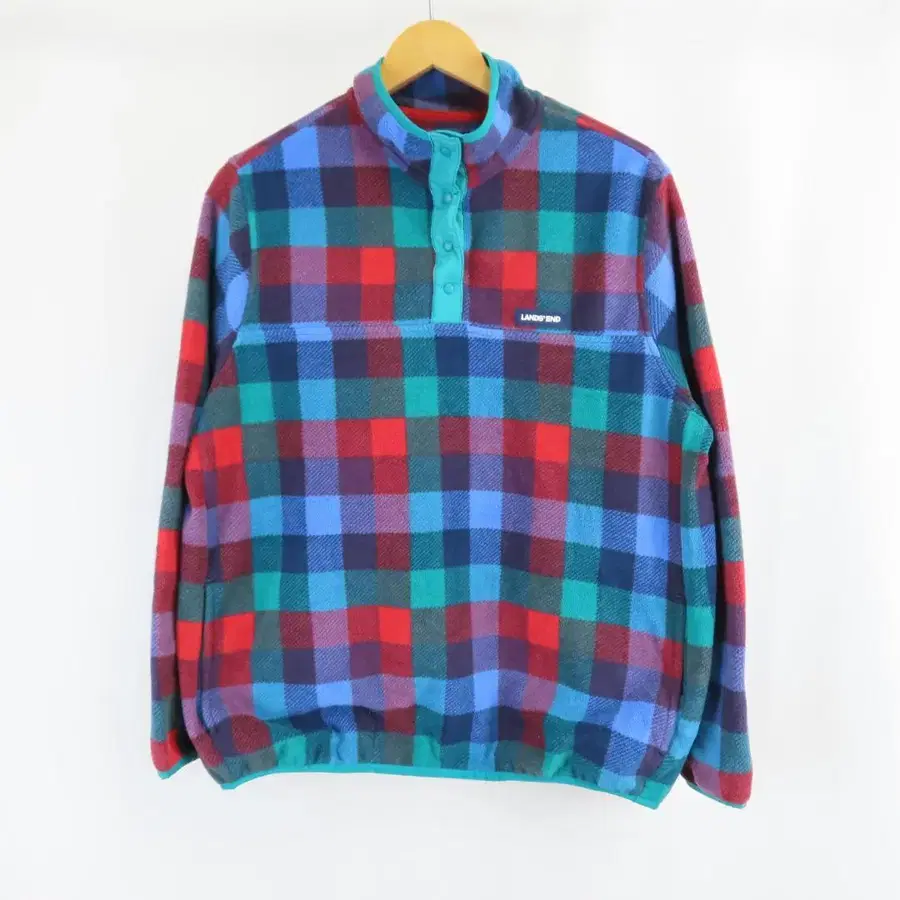 새상품급 LANDS'END 체크 하프 버튼 플리스 풀오버 L