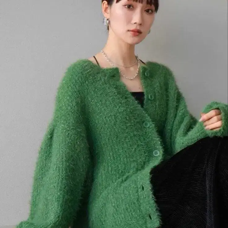 택 포함 새상품 뤼미에 크루넥 샤기 가디건 그린