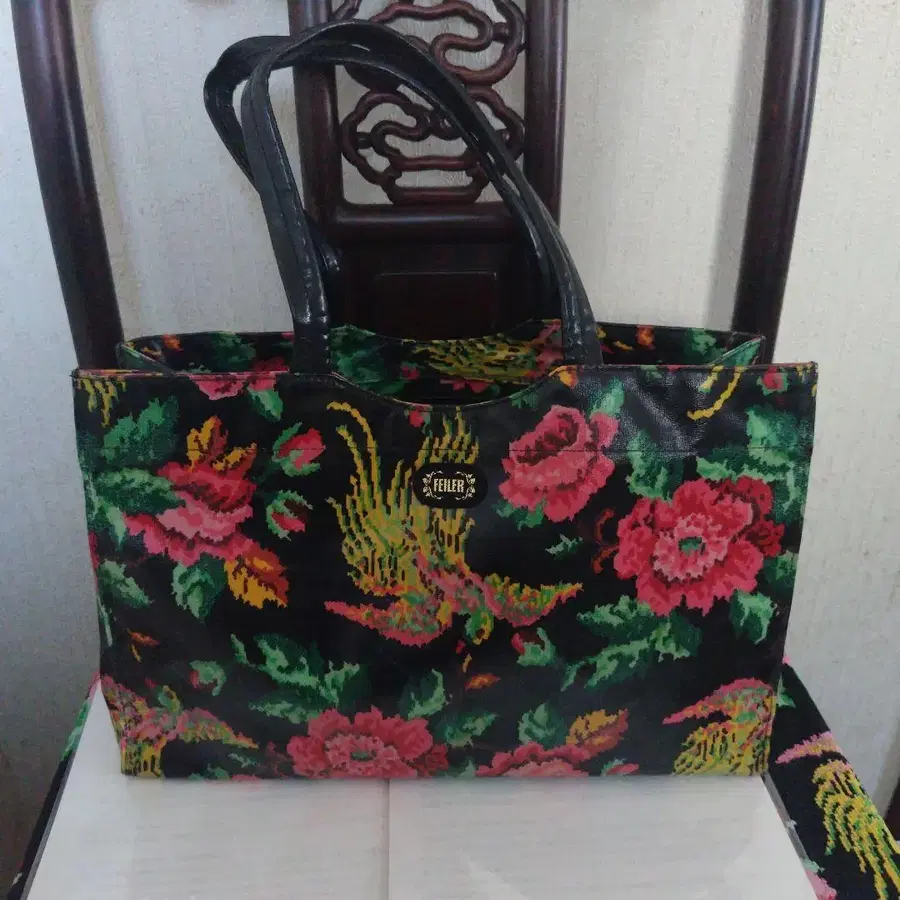 페이러 파라디스 봉황 패턴 비닐 토트백