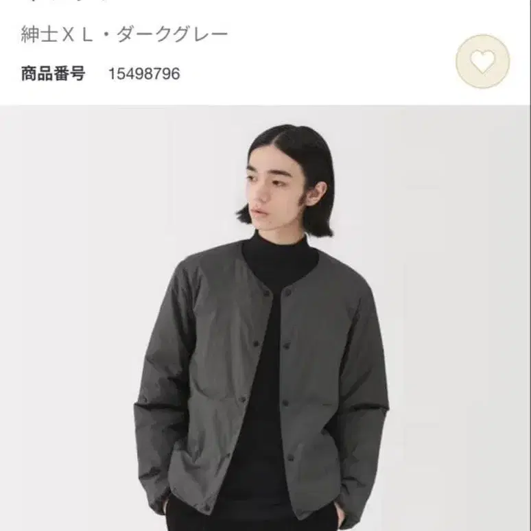 무인양품 경량 다운 포켓터블 노카라 자켓 빅 사이즈 XL D 그레이 잔여