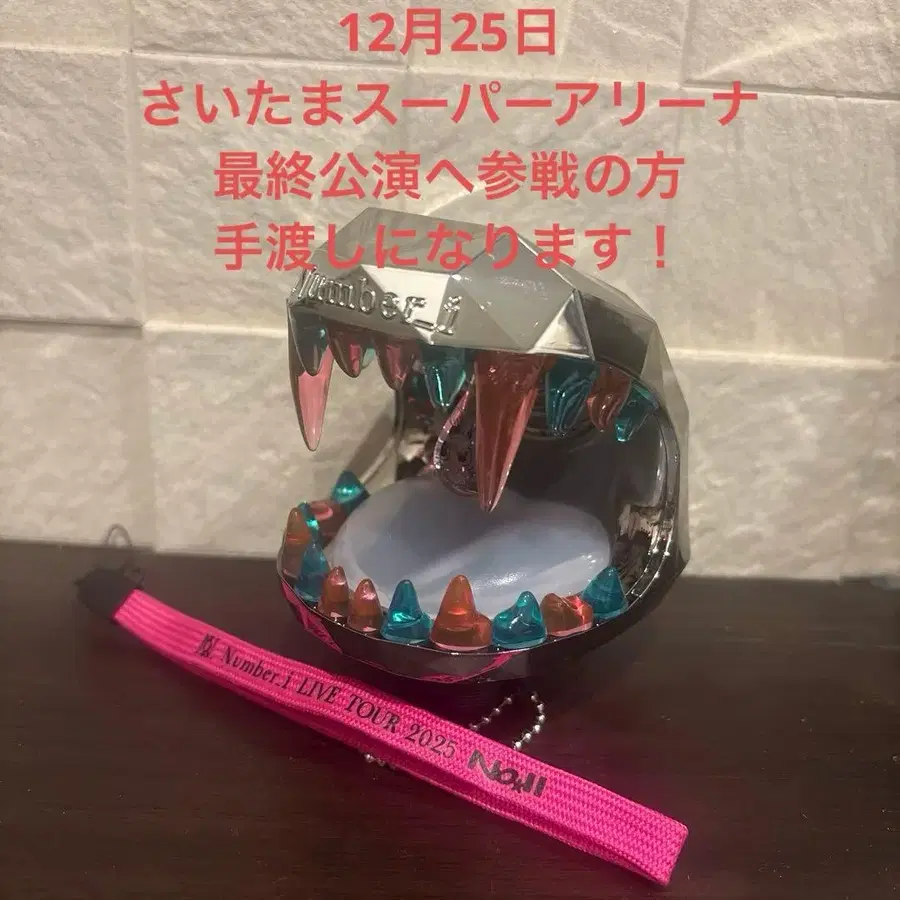 ※ 공연장에서 직접 전달해 드립니다. Number_i LIVE TOUR 2025 No.Ⅱ Number_i의 응원봉 탑입니다. 탑만 있습니다. 본체는 직접 가져와 주세요. 11월 3일 MUSIC EXPO 2025와 12월 25일 13:00 공연에서 사용할 예정이므로, 이후 마지막 공연에 참석하시는 분께는 사이타마 슈퍼 아레나에서 직접 전달해 드립니다. 배송비가 들지 않으므로 저렴하게 판매합니다. 또한, 12월 25일 공연 사용 후 전달되므로 현재 상태(흠집 등)가 달라질 수 있습니다. 미리 양해 부탁드립니다. ※ 현재 상태와 거의 변함없을 것이라 생각하지만, 만약을 위해 말씀드립니다. 메루카리 규정에 따라 구매 후, 당일 약속 장소 등은 메시지란으로 연락드릴 예정입니다. 수령하시면 수령 확인 및 평가 부탁드립니다! 원하시는 분께 판매하게 되겠지만, 잘 부탁드립니다. #Number_i #넘버아이 #응원봉
