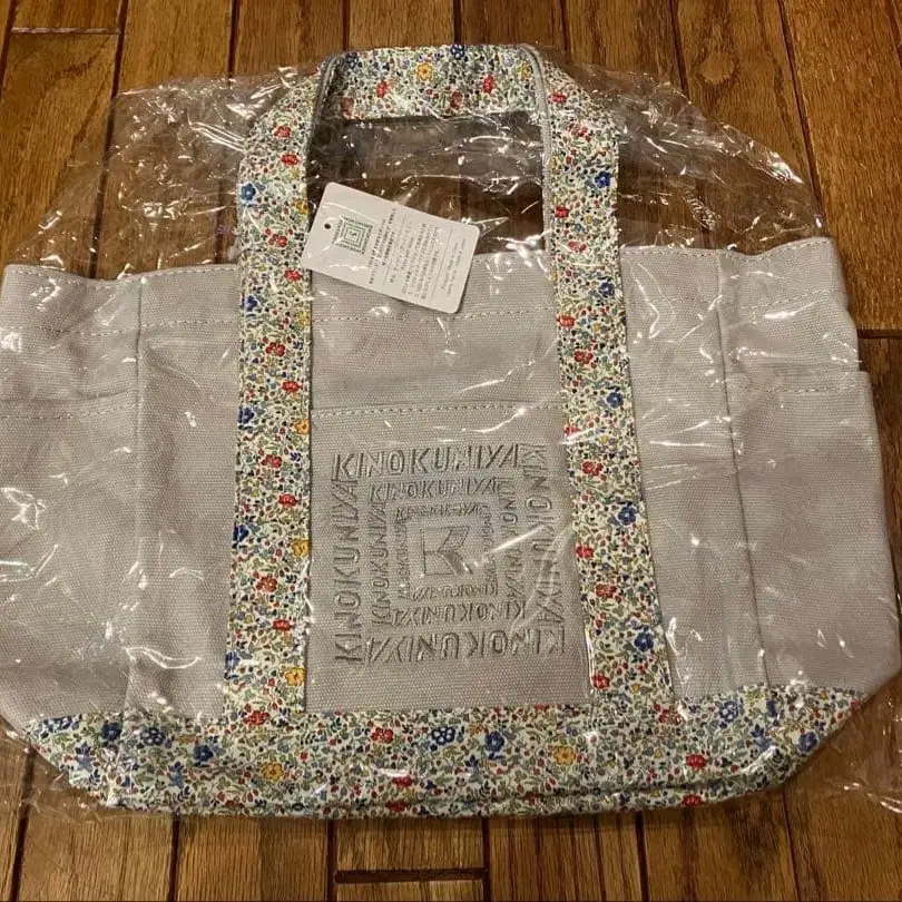 택 포함 새상품 키이노쿠니야 리버티 프린트 코튼 토트백 그레이