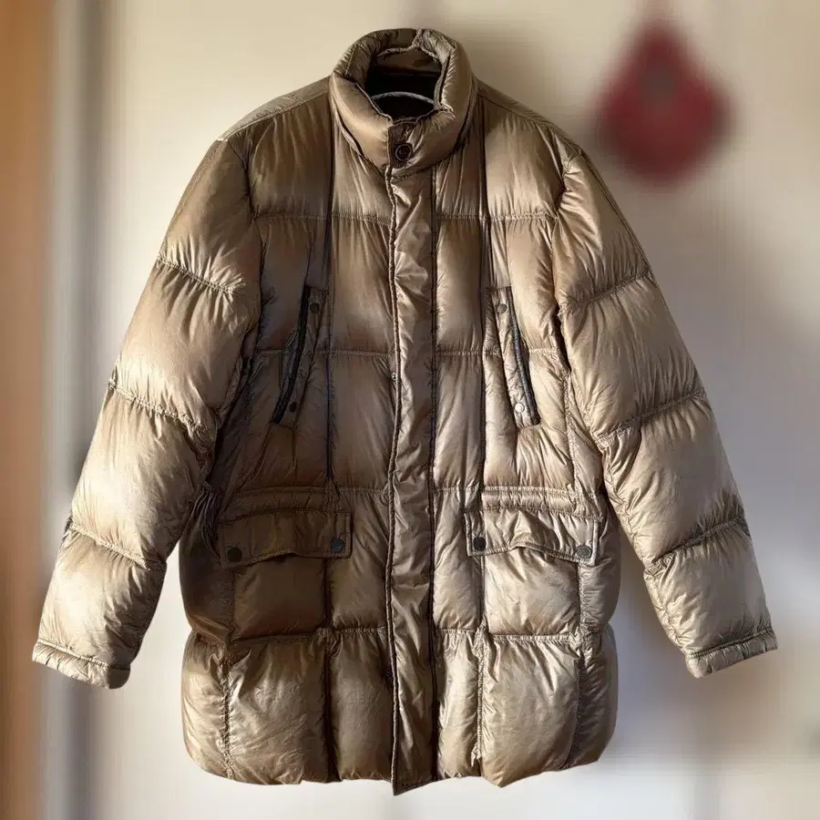 베이지 다운 자켓 스탠드 카라 후드 부착