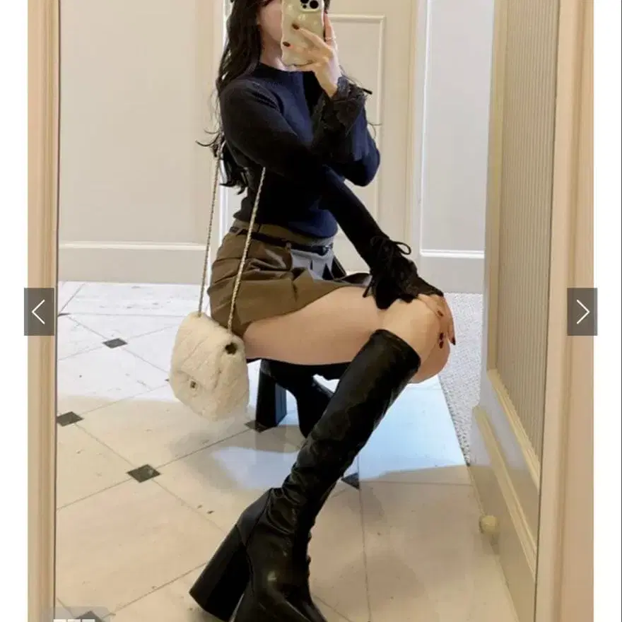 GRL 가죽 청키힐 롱 부츠 ci415 23.0cm 블랙
