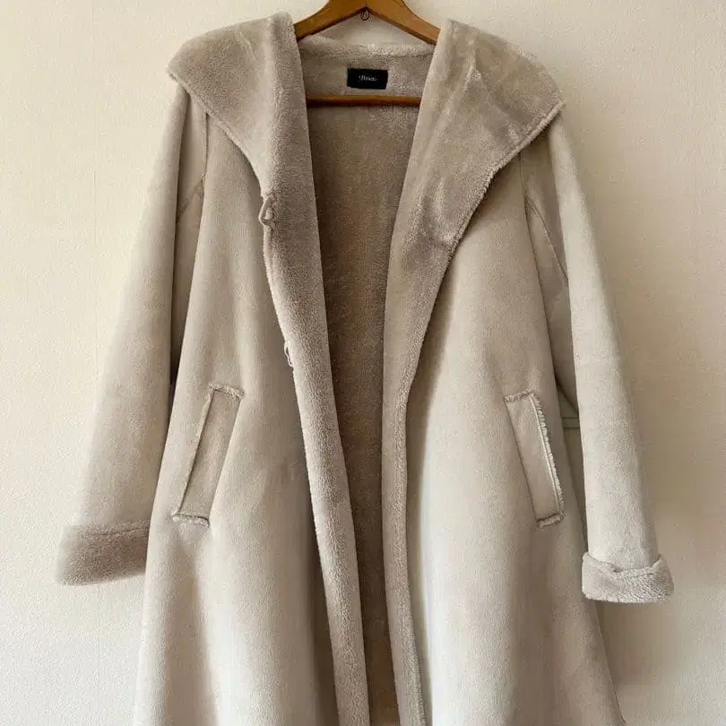 Jines 후드 부착 무스탕 코트 베이지