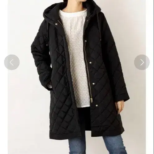 O and I 퀼팅 후드 하프 코트