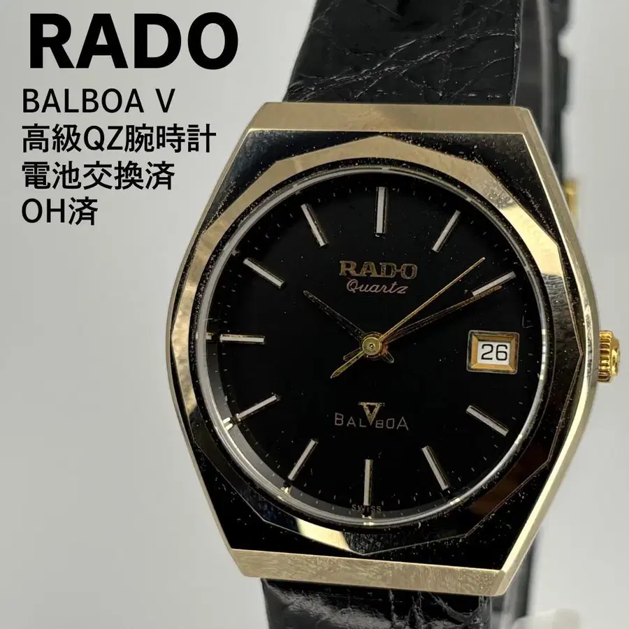 RADO BALBOA Ⅴ (라도 발보아 5)의 고급스러움이 넘치는 쿼츠 손목시계입니다. 샤프한 다각형 케이스와 깊이 있는 블랙 다이얼에 골드 색상의 인덱스와 바늘이 돋보이는 제품입니다. 스위스 브랜드다운 세련된 디자인으로 비즈니스부터 드레스 스타일까지 폭넓게 활약합니다. 해당 상품은 OH (오버홀) 완료, 배터리 교체 완료되었으므로 작동도 안심하고 구매 후 바로 사용 가능합니다. 빈티지 RADO 중에서도 존재감 있는 모델로, [RADO 쿼츠] [발보아] [고급 손목시계] [스위스산 시계]를 찾으시는 분께 꼭 추천하고 싶은 일품입니다.