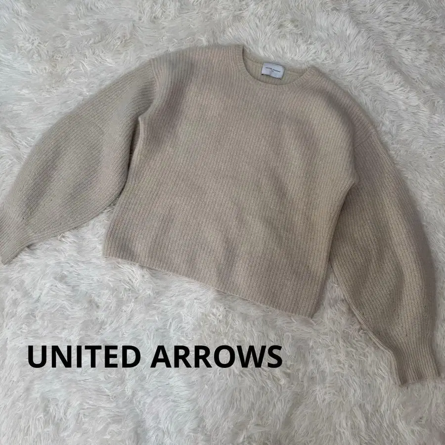 유나이티드 애로우즈 퍼프 슬리브 폭스 울 니트 아이보리