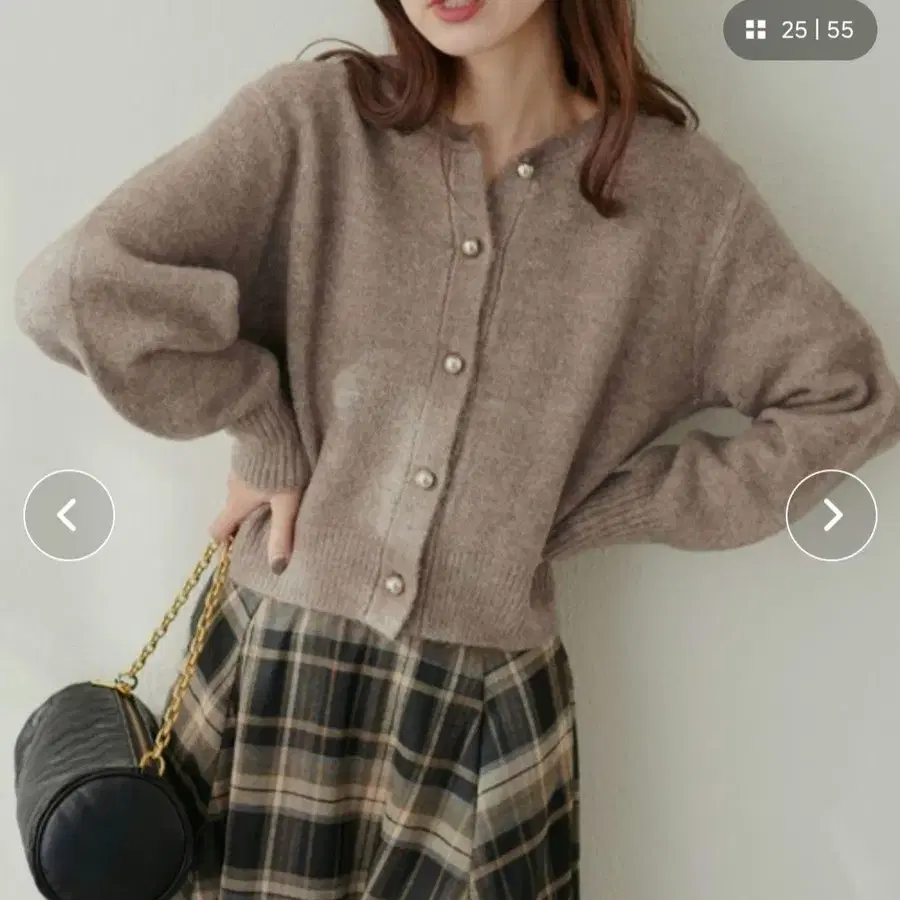 • 베이지색의 복슬복슬한 긴팔 가디건