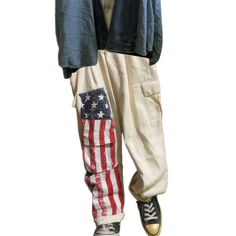 자동 번역되었어요. 원문보기90s 리메이크 성조기 디자인 루즈핏 하의