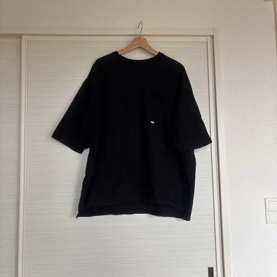 오버 사이즈 블랙 T셔츠 포켓 부착
