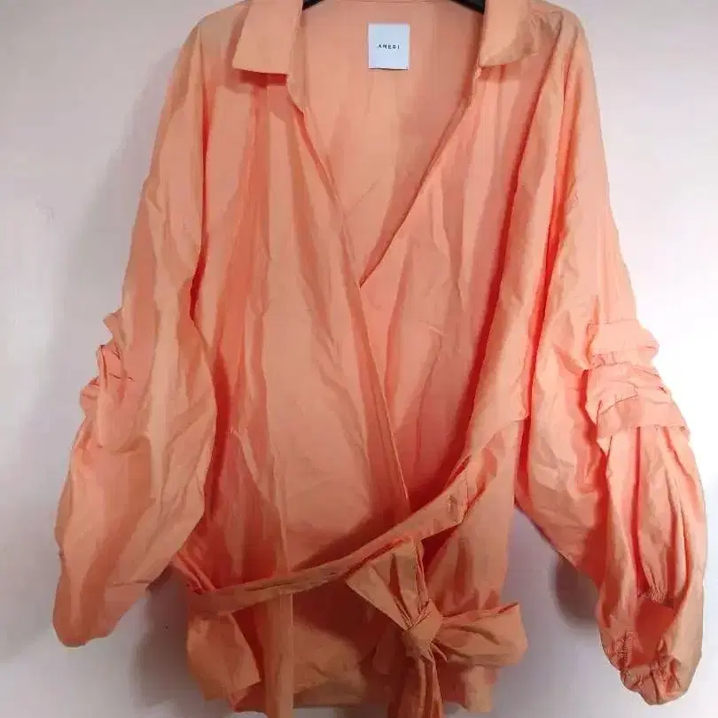 AMERI 오렌지 랩 셔츠 벌룬 슬리브