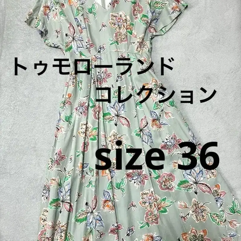 투모로우랜드 플라워 프린트 반팔 무릎 기장 원피스 그레이