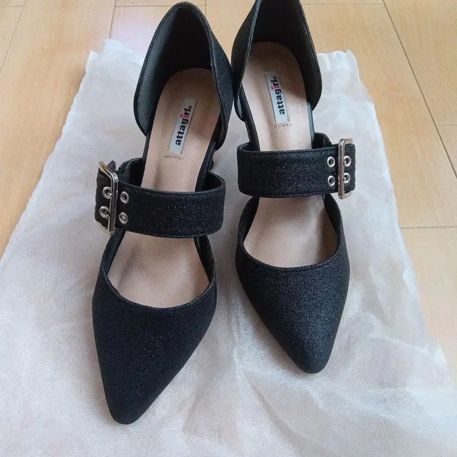 블랙 글리터 스틸레토 하이힐 S 사이즈
