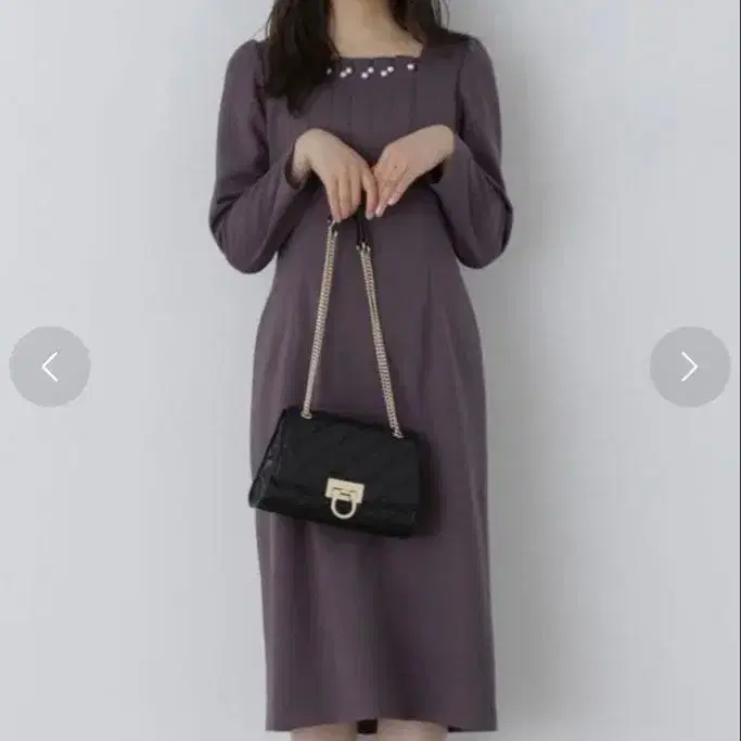 프로포션 바디 드레싱 데콜테 펄 타이트 원피스 퍼플