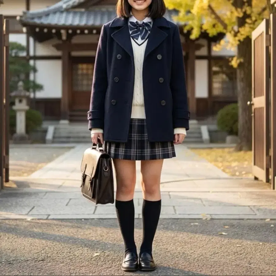 겉감은 울 90%를 사용한 고급스러운 멜톤 원단으로, 보온성이 뛰어납니다. 안감은 충전솜 퀼팅 사양으로 되어 있어, 추운 통학길에도 따뜻하게 보낼 수 있는 한 벌입니다.