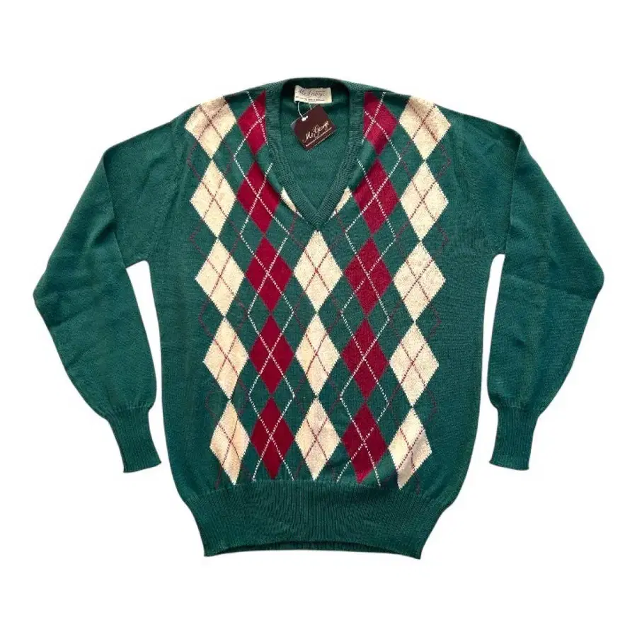 미사용 새상품 McGeorge 아가일 스웨터 M 그린 코튼