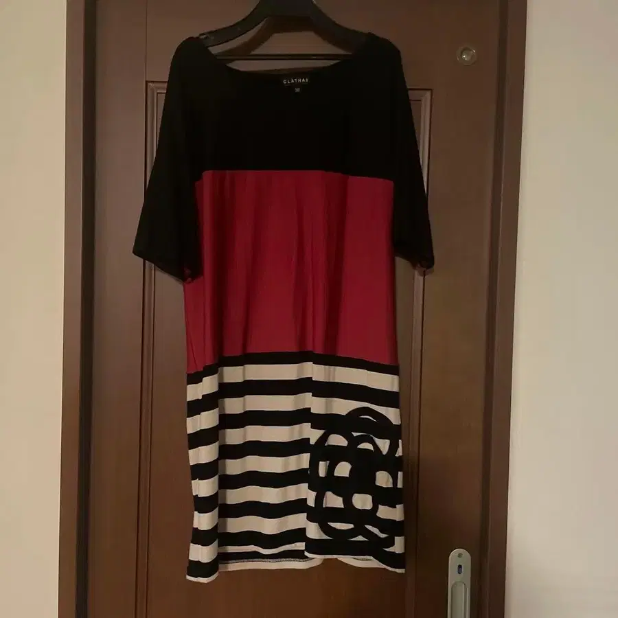 CLATHAS 튜닉 반팔 38 블랙/빨간색/스트라이프