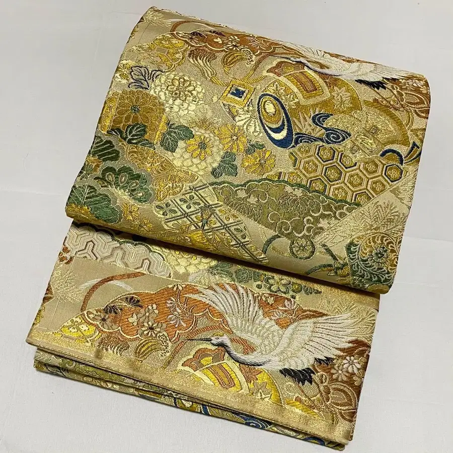해당 상품은 앤티크 학, 꽃, 보물, 금실, 순수 실크 전통 마루 오비 포멀입니다.