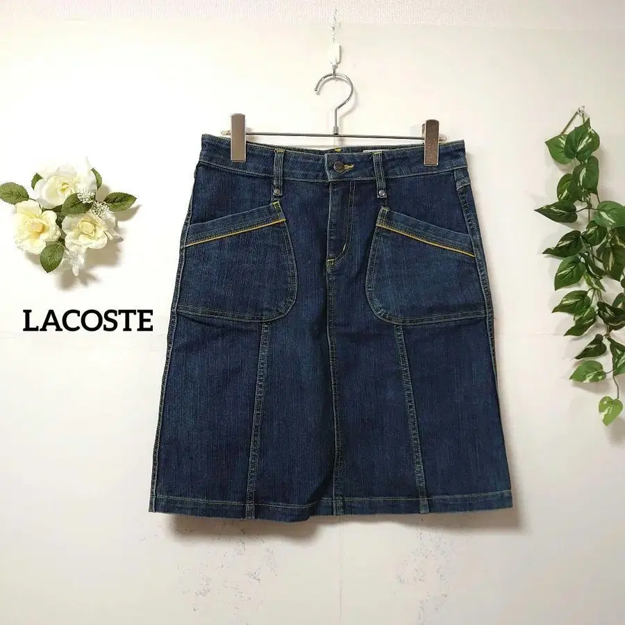 라코스테 무릎 기장 데님 스커트 M 소가죽 라벨