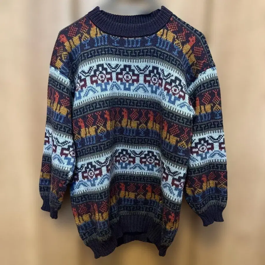 컬러풀 기하학 패턴 니트 스웨터 볼리비아